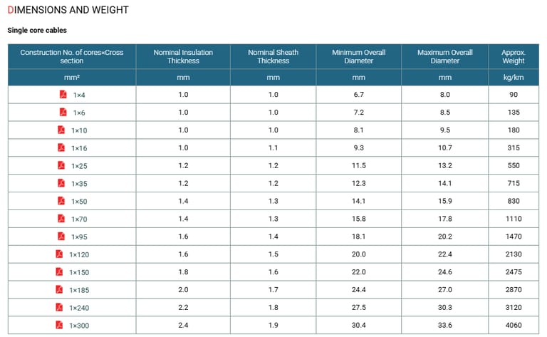 Sheath : Halogen free thermosetting compound SW4 according to BS 7655 2.6 or reduced halogen thermosetting compound SW2 according to BS 7655 2.6.