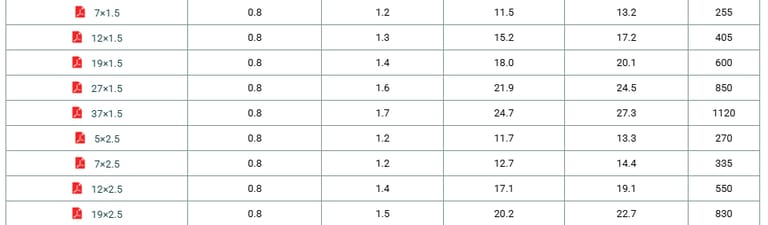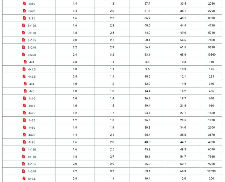 Construction No. of cores×Cross section | Nominal Insulation Thickness | Nominal Sheath Thickness | Minimum Overall Diameter | Maximum Overall Diameter | Approx. Weight |