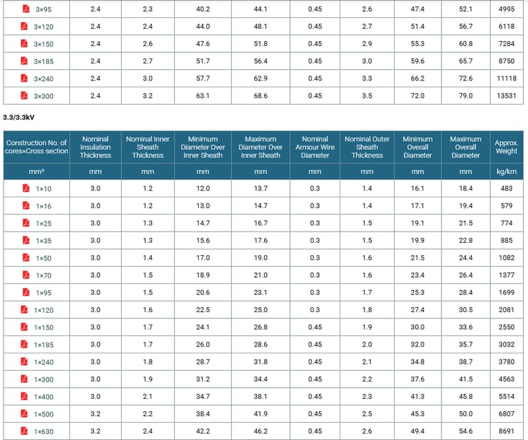 1.9/3.3kV, 3.3/3.3kV HF-EPR Insulated, SW2/SW4 Sheathed Armoured Flame Retardant Power & Control Cables