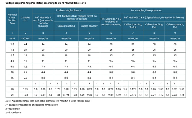 Current-Carrying Capacities (Amp) according to BS 7671:2008 table 4D1A
