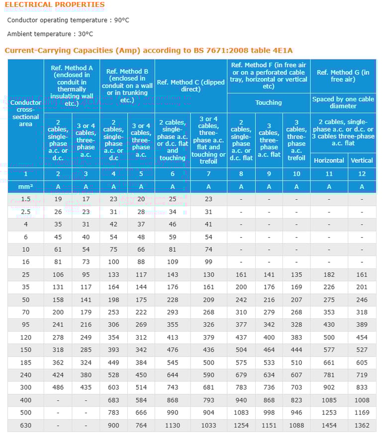 Conductor : Copper conductor according to BS EN 60228 class 1/2/5.