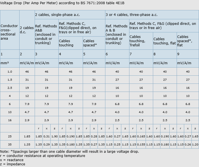 Current-Carrying Capacities (Amp) according to BS 7671:2008 table 4E1A