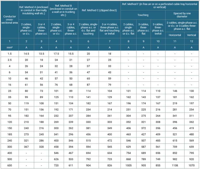 Conductor : Copper conductor according to BS EN 60228 class 2.