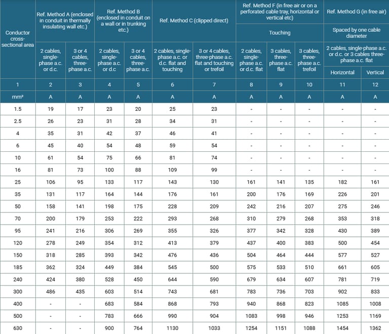 circular copper conductors OD≤25mm : 4 × Overall Diameter