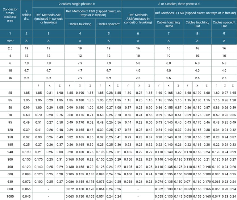 circular copper conductors OD≤25mm : 4 × Overall Diameter
