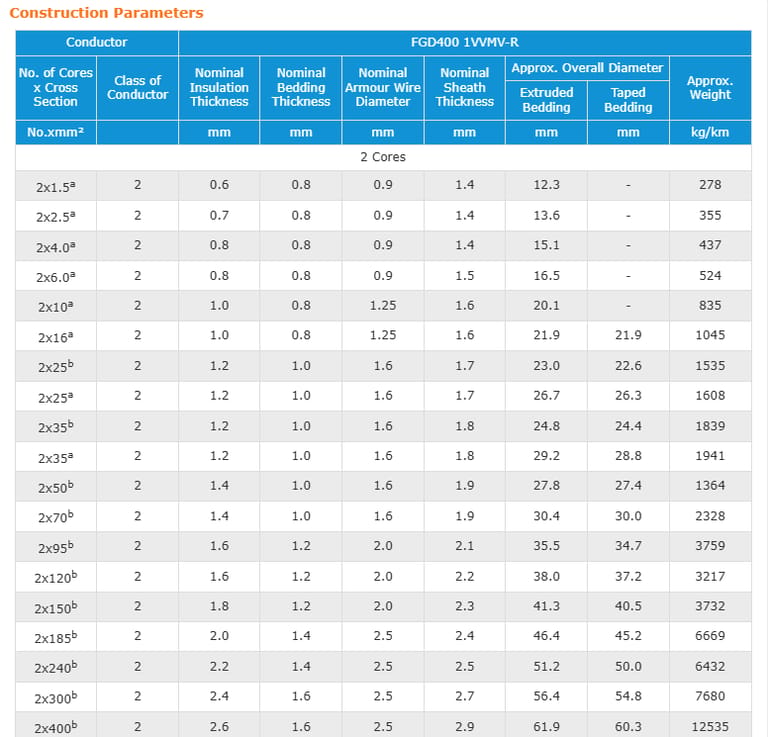 Insulation Colour | Two-core: Brown, blue |