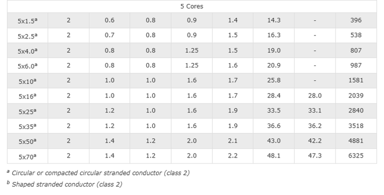 Circular copper conductors | 6 x Overall Diameter |