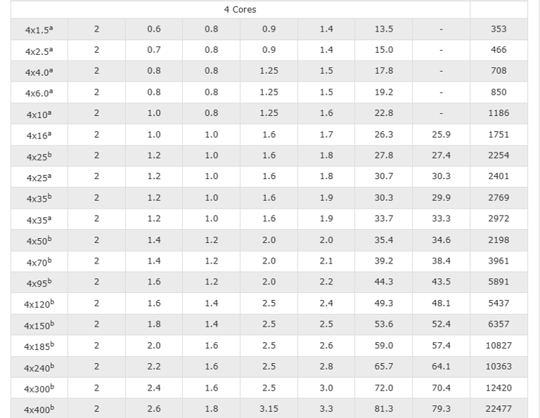 Current-Carrying Capacities (Amp) according to BS 7671: 2008 table 4D4A
