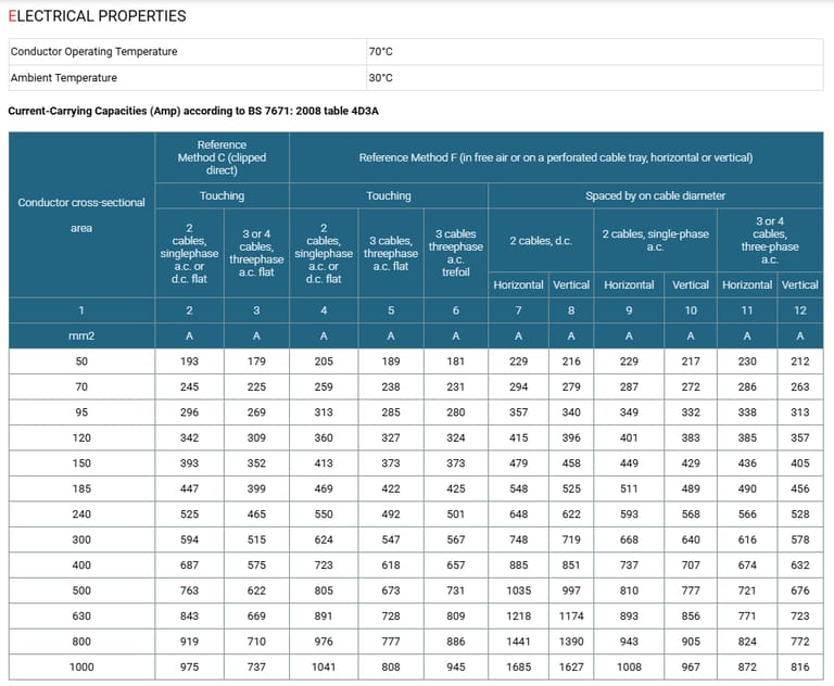 The 2019-2022 expansion of Cape Town International Airport incorporated these cables for power distribution to new terminals and runways. The cables’ compliance with BS EN 50265-2-1 for flame retardance was crucial in meeting stringent safety regulations for public spaces. The use of 185 mm² and 240 mm² conductors supported high-power lighting and HVAC systems, with current capacities of 447 A and 525 A, respectively, under clipped direct conditions. The project demonstrated the cables’ suitability for high-traffic, safety-critical environments.