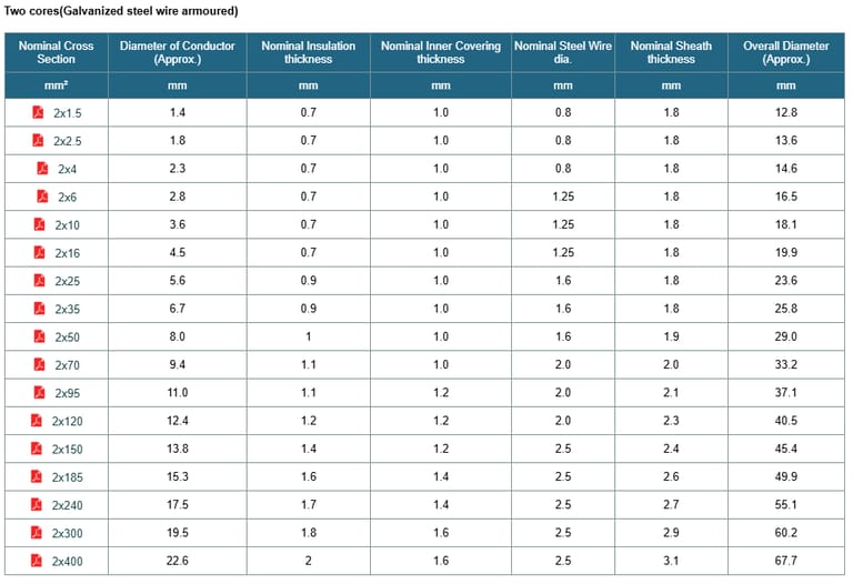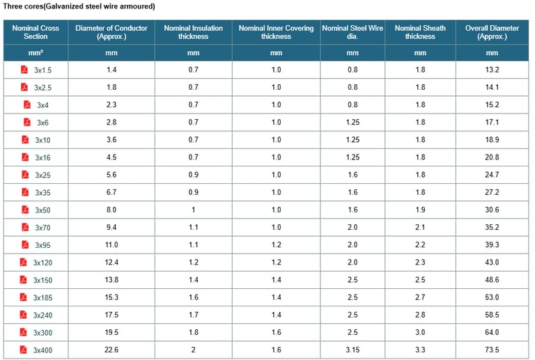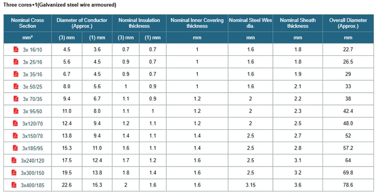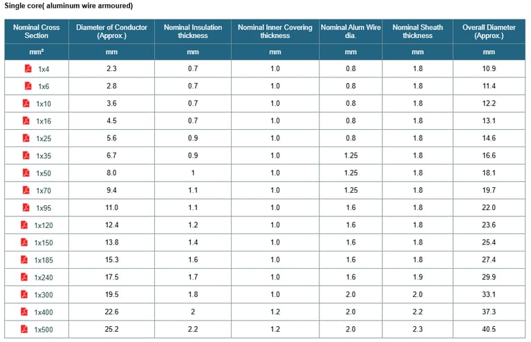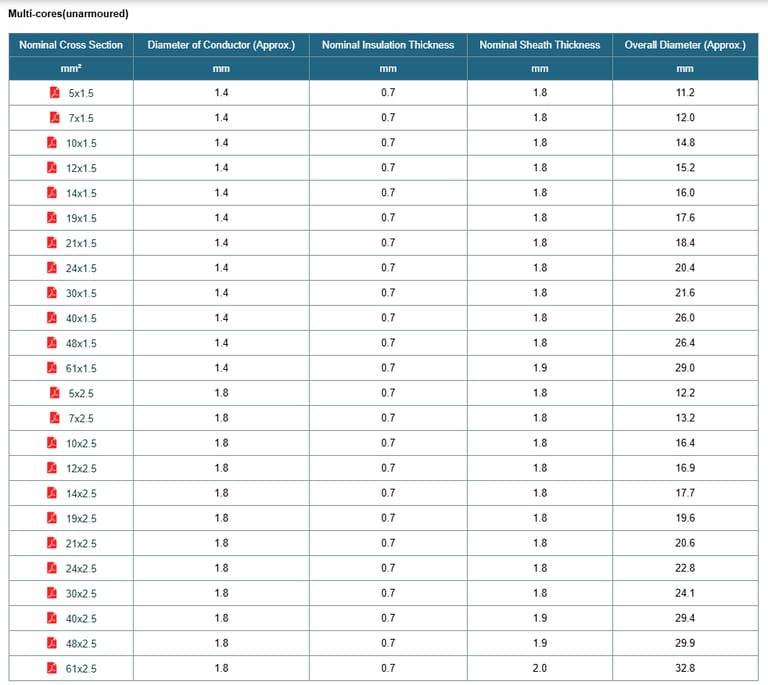 Unarmoured cables suit low-risk indoor/outdoor setups, like home wiring, with overall diameters from 5.6 mm (1x1.5 mm²) to 70.7 mm (4x400 mm²). Armoured versions add protection for underground or industrial use, increasing diameter (e.g., 10.9 mm for 1x4 mm² single-core) but enhancing durability against impacts.