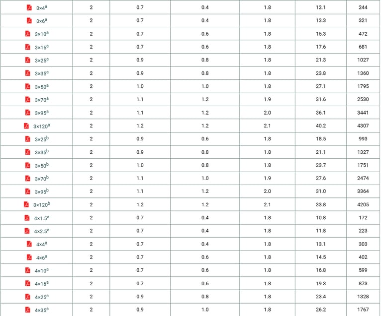 circular copper conductors OD≤25mm : 4 × Overall Diameter