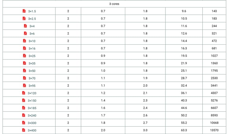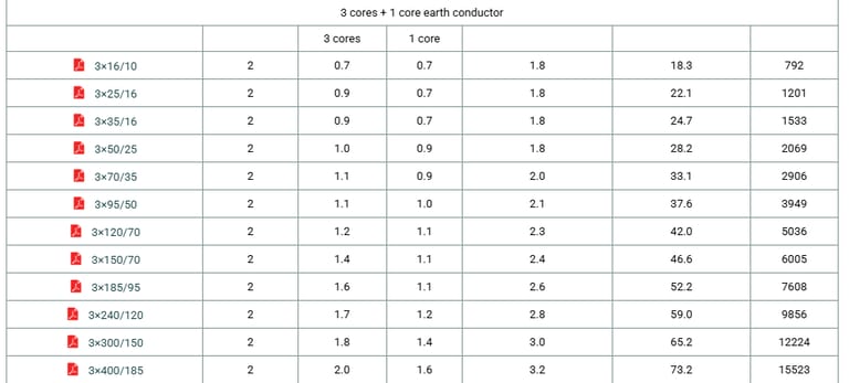 Outer Sheath : Thermoplastic halogen free compound ST8 as per IEC 60502-1.