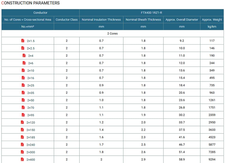 Conductor : The conductors shall be class 2 plain or metal-coated annealed copper in accordance with IEC 60228. Class 1 and class 5 conductor can be offered as option.