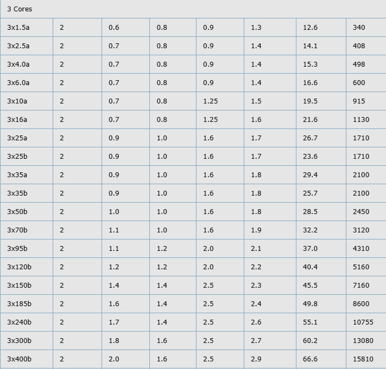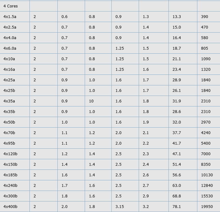 Current-Carrying Capacities (Amp) according to BS7671:2008 table 4E4A
