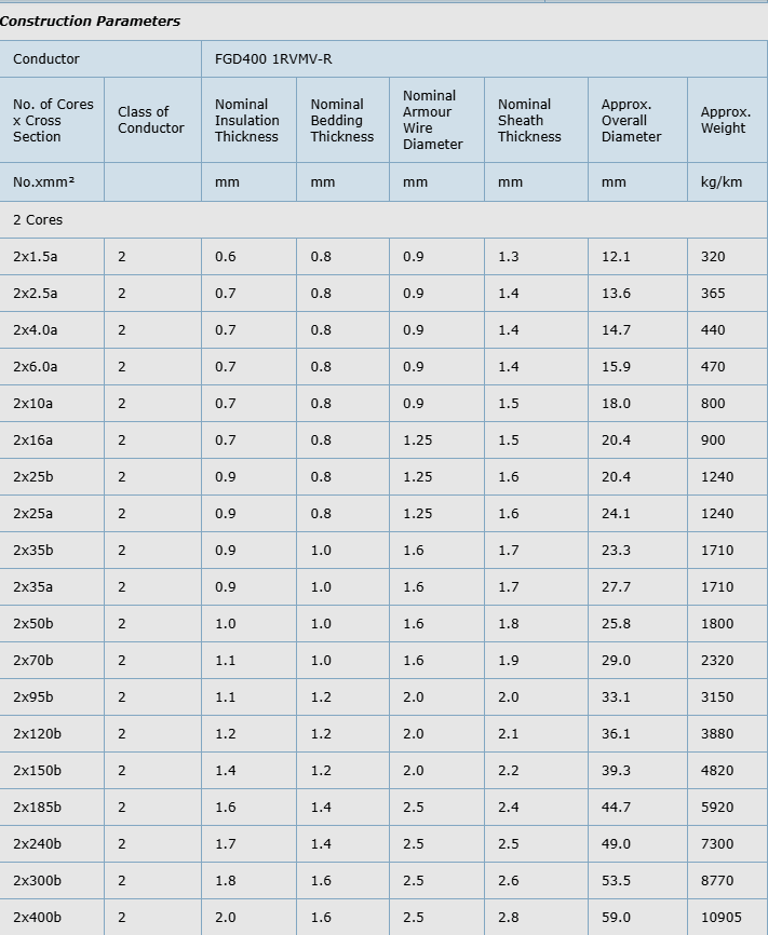 Insulation Colour | Two-core: Brown, blue |