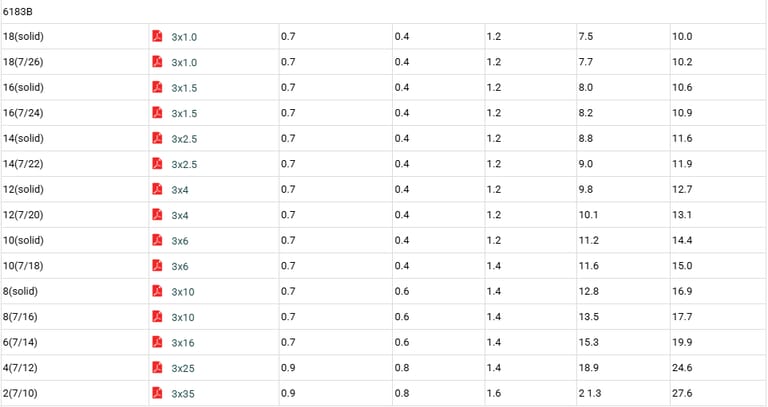 - For 2 cores and above, the cores shall be laid up together. Centre filler may be used; the laid up cores