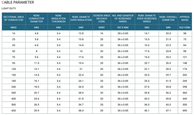 INSULATION: Cross Linked Polyethylene (XLPE) – standard Ethylene Propylene Rubber (EPR) – alternative