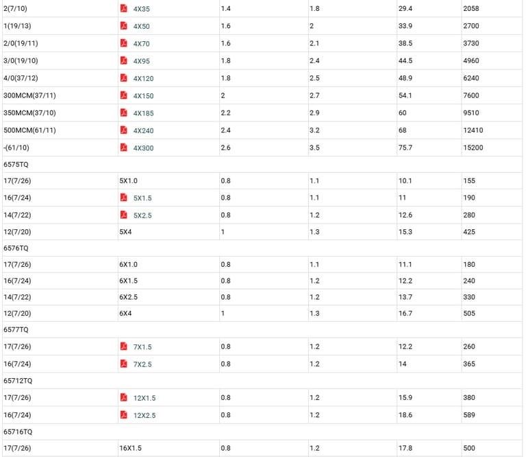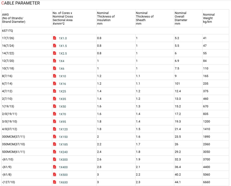 - Minimum bending radius: up to 10mm^2 - 3xOverall diameter