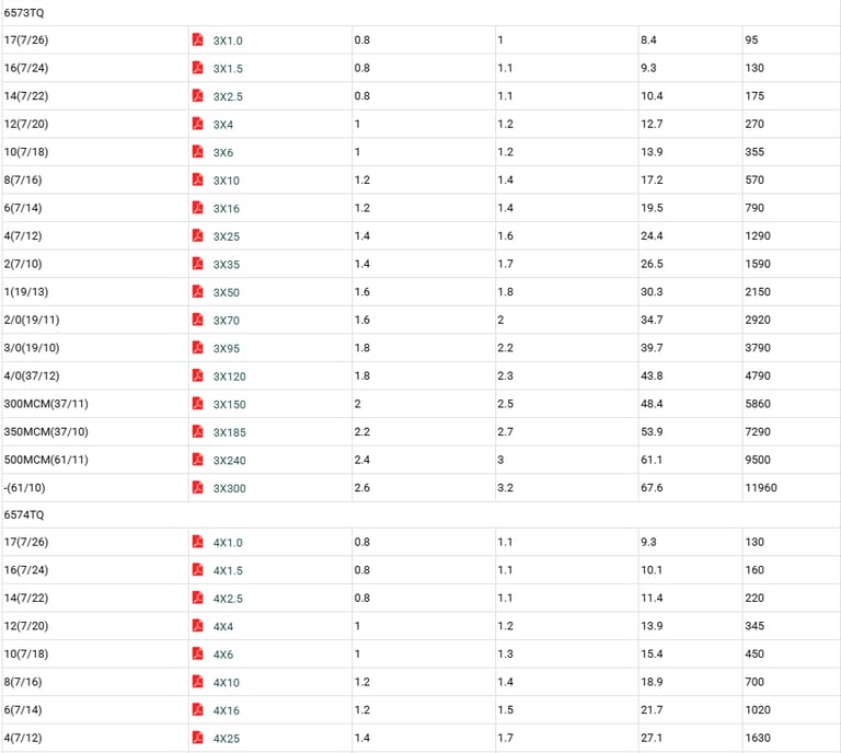 5 cores and above: white insulation with black numerals