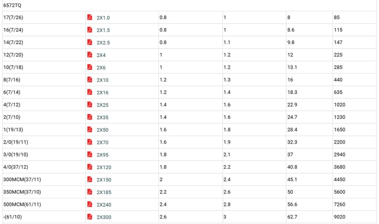 - Working voltage: 600/1000 volts