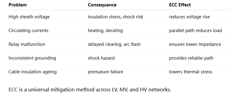 ECC provides a deliberate, engineered low-impedance path, diverting fault current safely.