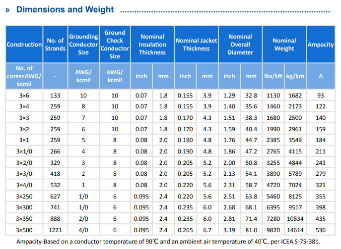 Custom lengths and conductor sizes for mine-specific power requirements.
