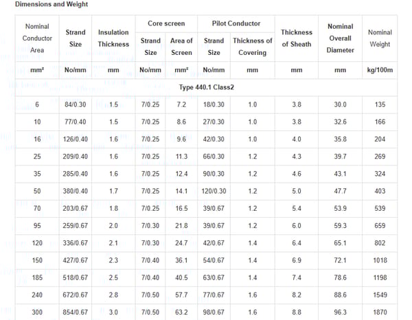 AS/NZS 2802 Type 440 1.1 to 22KV Mining Cable