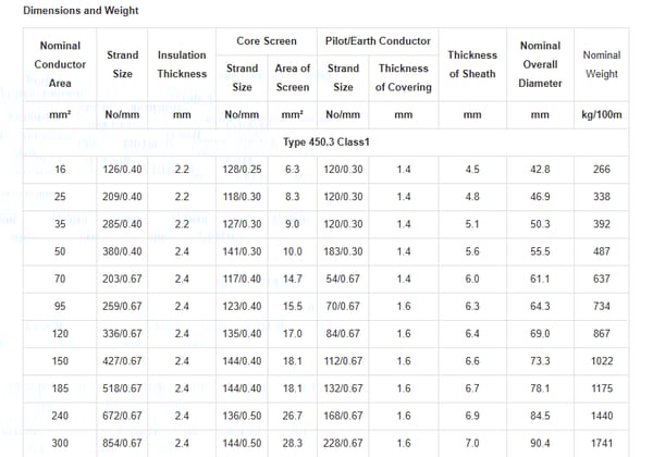 Applications | These cables are suitable for supply of power to a wide range of applications, from dragline cable to slow reeling applications, where copper screened cable is required but light weight and smaller dimensions are also desired. |