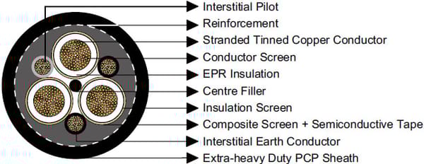 1×Interstitial Pilot | EPR covered flexible stranded tinned copper conductor. |