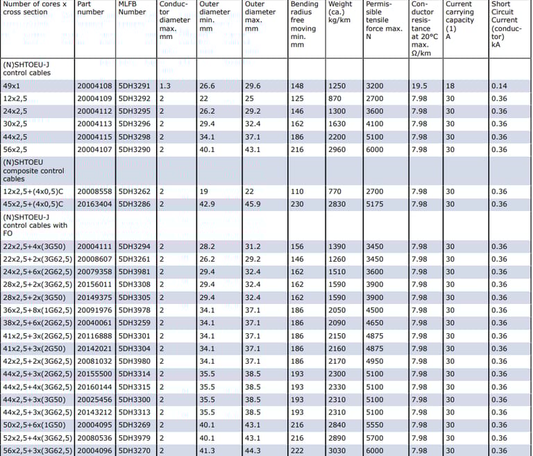Control Cables: Available with multiple cores (e.g., 49x1 mm², 12x2.5 mm², up to 56x2.5 mm²), designed for precise control in lifting systems.