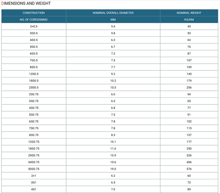Sheath | PVC Type YM 2/TM 2. |