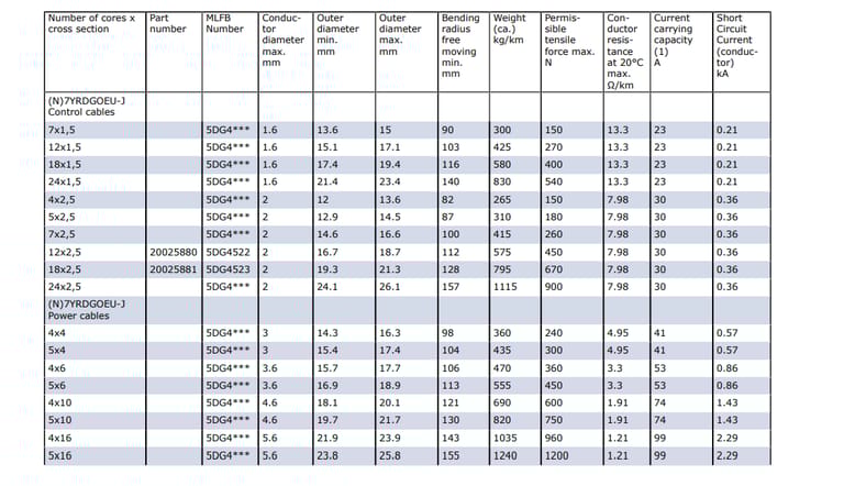 Q: What core sizes are available? A: Control: 7x1.5 to 24x2.5 mm²; Power: 4x4 to 5x16 mm².