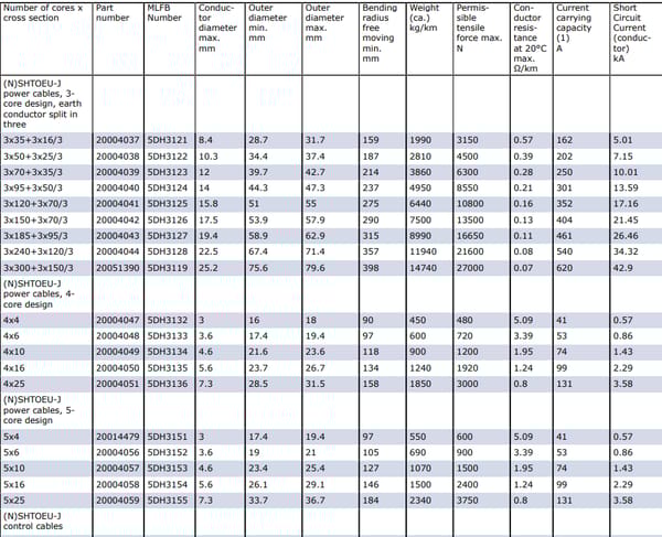 Core identification: Best identification as a result of light colored insulation with numbers printed in black for power and control cables, earth conductor green-yellow colored.