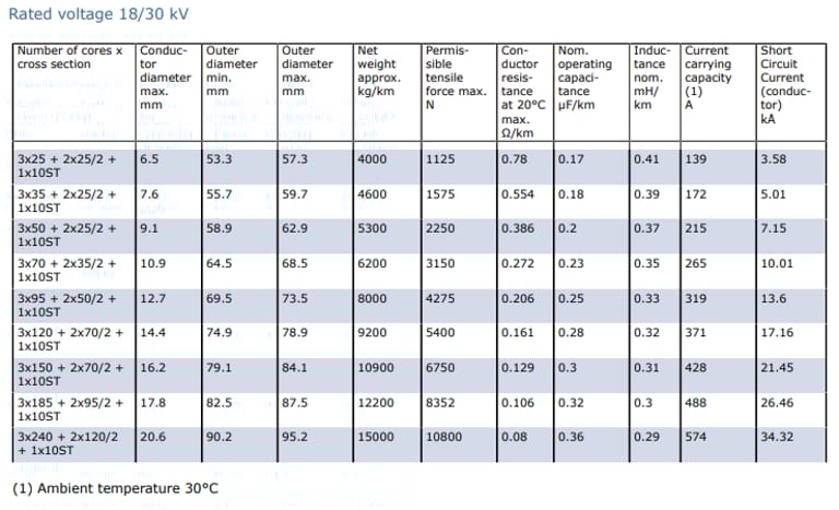 18/30 kV, 20.8/36 kV, 27/54 kV, 43 kV |