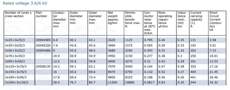 Medium Voltage Flexible Cables for Use in Water | Voltage Ratings | 3.6/6 kV, 4.2/7.2 kV, 5.4/10.8 kV, 11 kV, 6/10 kV, 6.9/12 kV, 9/18 kV, 17 kV, 8.7/15 kV, 10.4/18 kV, 13.5/27 kV, 24 kV, 12/20 kV, 13.9/24 kV, 18/36 kV, 29 kV, 14/25 kV, 17.3/30 kV, 22.5/45 kV, 36 kV, 18/30 kV, 20.8/36 kV, 27/54 kV, 43 kV |