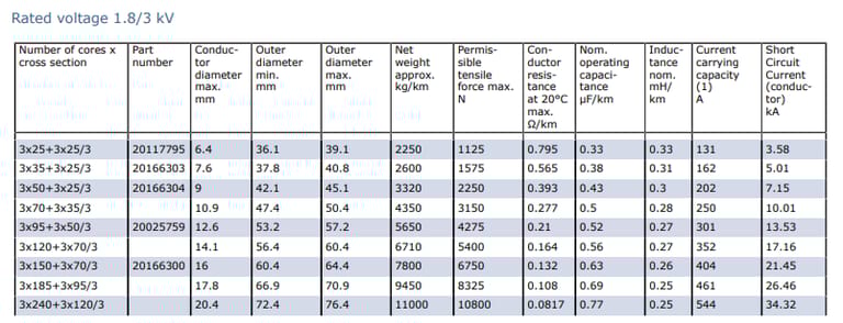 Core Arrangement | Three main conductors laid-up with protective-earth conductor split into 3 in the outer interstices | |