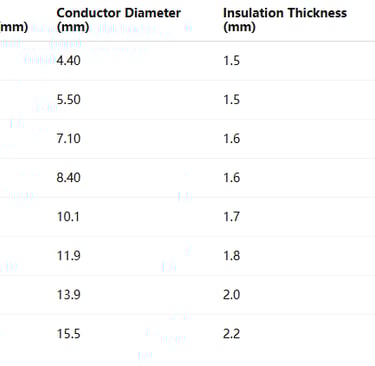 DC Resistance (Phase at 20°C): 1.95 Ω/km (3×10) to 0.164 Ω/km (3×120)