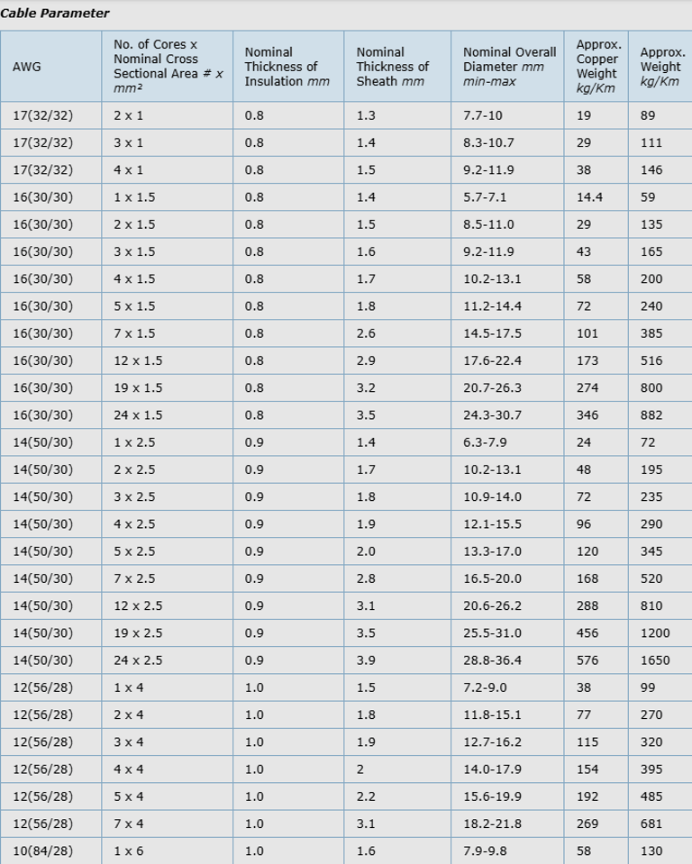 These cables are designed to provide high flexibility and have the capacity to withstand weather, oils/greases, mechanical and thermal stresses.