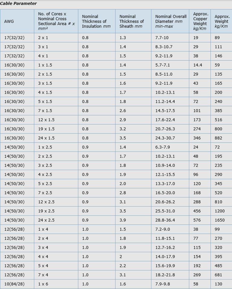 - Flexing bending radius: 6 x Ø