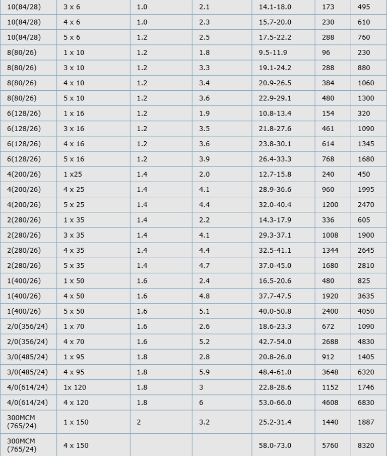 These cables are designed to provide high flexibility and have the capacity to withstand weather, oils/ greases, mechanical and thermal stresses. Applications include handling equipment, mobile power supplies, worksites, stage and audio visual equipment, port areas and dams. Also suitable for fixed installations on plaster, temporary buildings and residential barracks and for use in drainage and water treatment, cold environments and severe industrial environments. Max operating voltage in single or three phase system is Uo/U 476/825 volts. In a direct current system max operating voltage is Uo/U 619/1238 volts. If in a fixed or protected installation Uo/U is 600/1000 volts. These cables are resistant to flame, acids, and oil penetration.