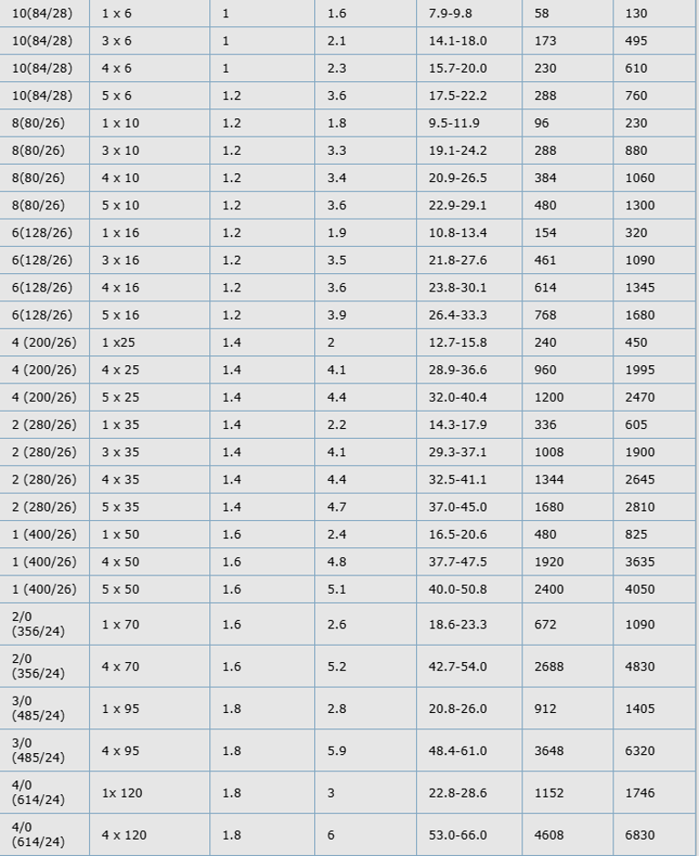 The cable comes in various configurations, from 1 to 24 cores, with cross-sectional areas ranging from 1 mm² to 300 mm², catering to diverse power needs. For example, a 4 x 25 mm² cable has a nominal overall diameter of 28.9–36.6 mm, a copper weight of 960 kg/km, and a total weight of 1995 kg/km, making it suitable for heavy-duty applications.