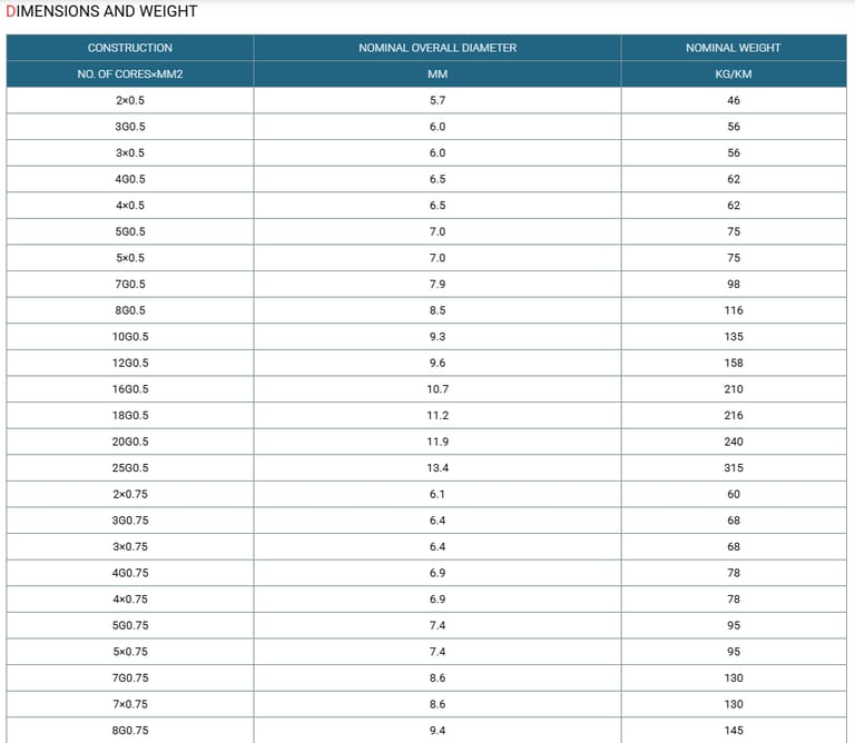 Conductor | Stranded bare copper, class 5 according to DIN VDE 0295/BS 6360/IEC 60228. |