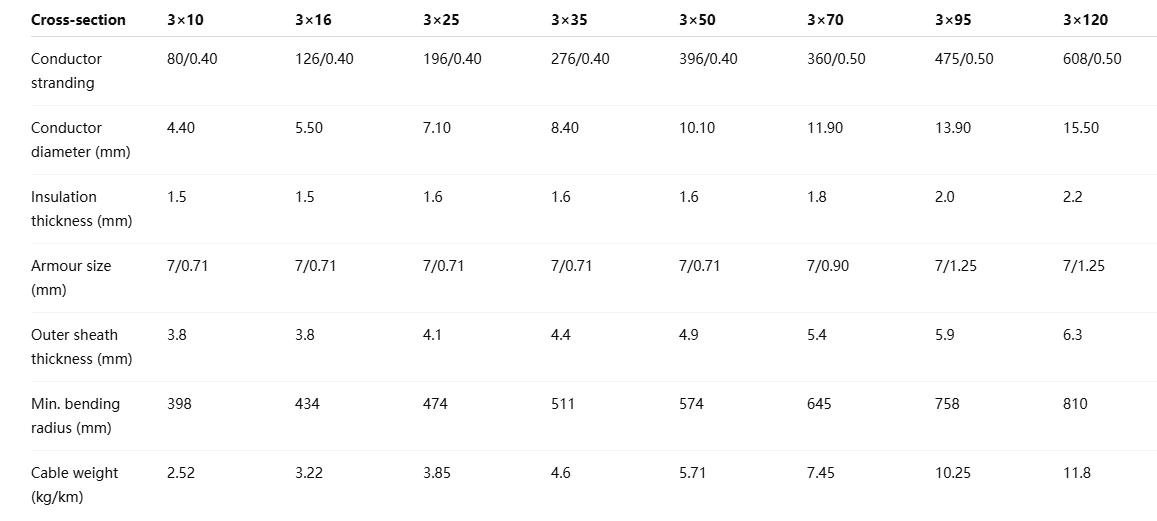 Flexibility: The combination of stranded conductors and pliable armour ensures the cable bends without damage, essential for trailing machinery.