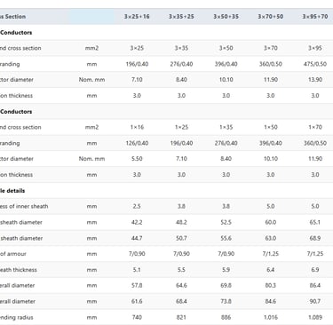 The heart is electrolytic, stranded, tinned copper wire per IEC 60228 Class 5. Fine stranding (e.g., 196/0.40 mm for 25 mm² phases) enhances flexibility, resisting fatigue from constant flexing. Tinning prevents oxidation, vital in humid underground conditions, ensuring low-resistance paths for current flow.