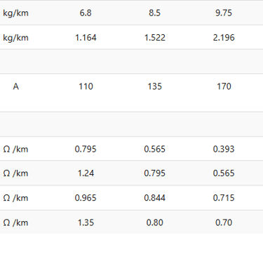 Ampacity at 25°C ambient: 110 A for 3×25+16, up to 295 A for 3×120+70. Derating applies in hotter shafts, but EPR aids heat dissipation.