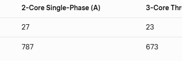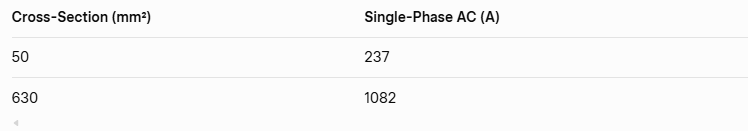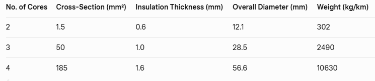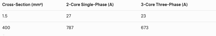 Electrical characteristics shine in current-carrying capacity. For 0.6/1kV multicore (clipped direct, 30°C air):
