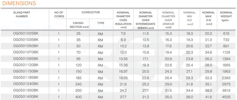 CHARACTERISTICS | Voltage Rating (Uo/U): 0.6/1kV Temperature Rating: -20°C to +60°C |