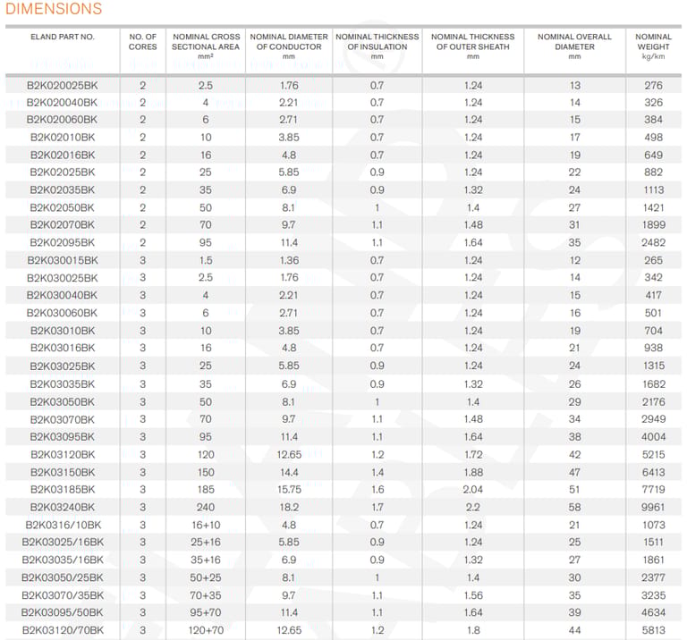 Standards | IEC 60502-1, VDE 0276-603, IS 1516.1, IEC/EN 60228 Flame retardant according to IEC/EN 60332-1 |