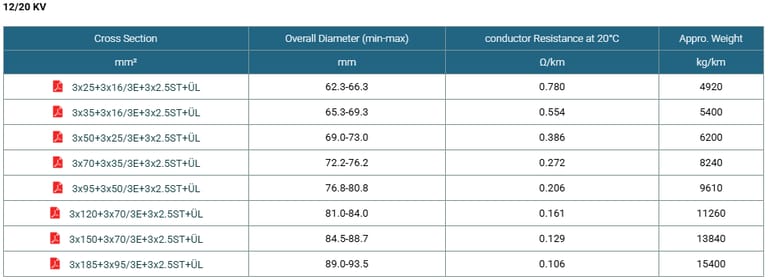 Rated Voltage | 3.6/6KV | 6/10KV | 8.7/15KV | 12/20KV | 18/30KV |