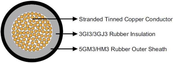 Outer Sheath | Chlorinated rubber type 5GM3, oil resistant and flame retardant (for NSGAFOEU/ NSGAFCMOEU). |